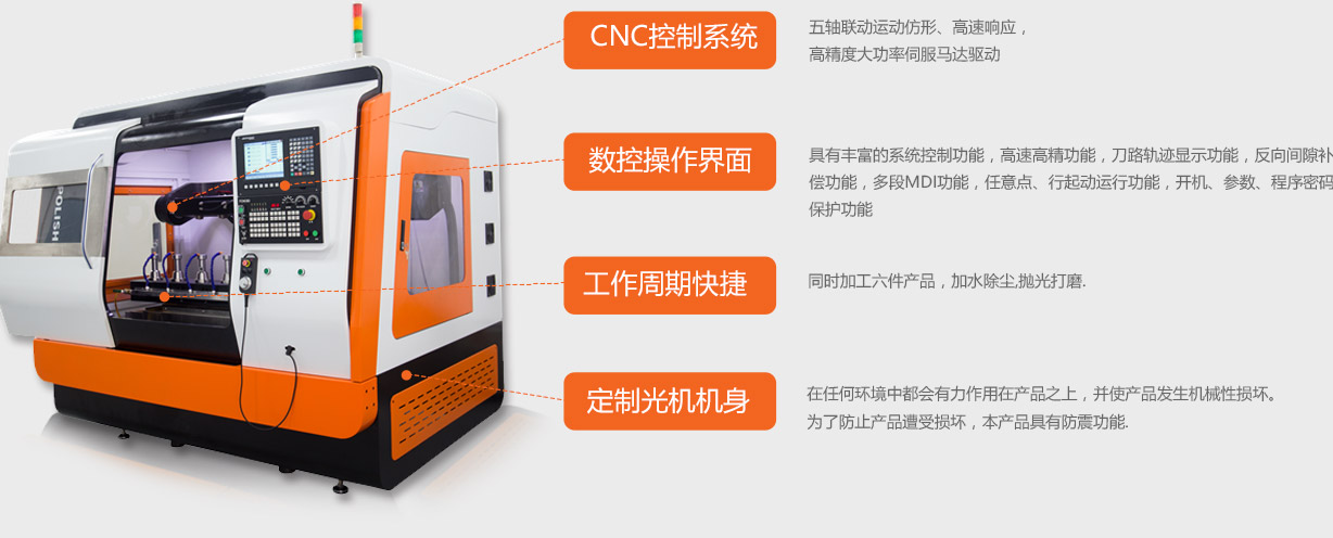打磨方式為濕式;同時加工六件產(chǎn)品,工作周期快捷;